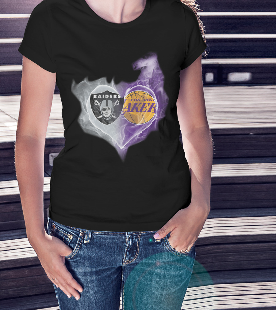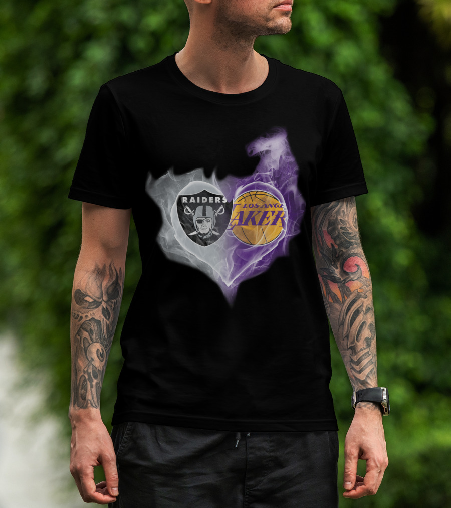 Raiders Los Angeles Lakers Heart Smoky Fusion T-Shirt