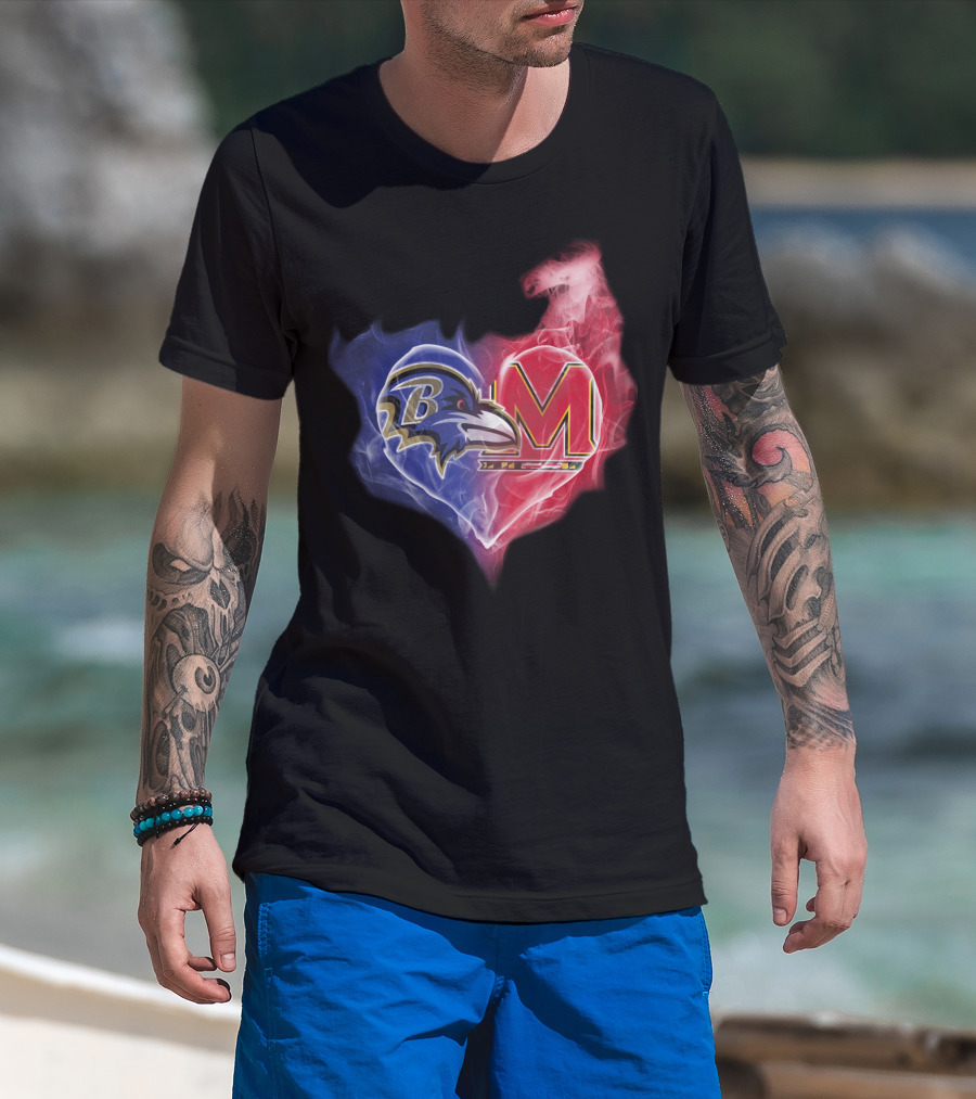Ravens Maryland Terrapins Heart Logo Fusion T-Shirt