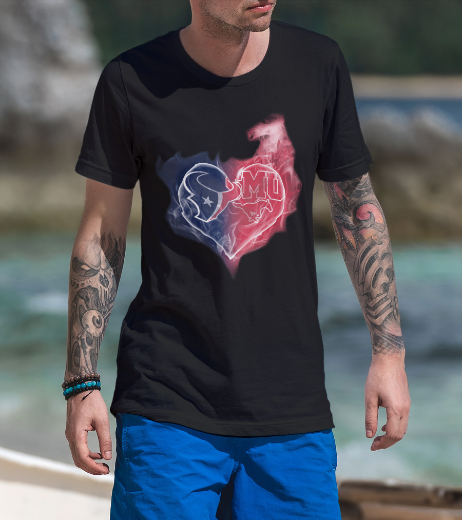 Texans SMU Mustangs Heart Logo Fusion T-Shirt