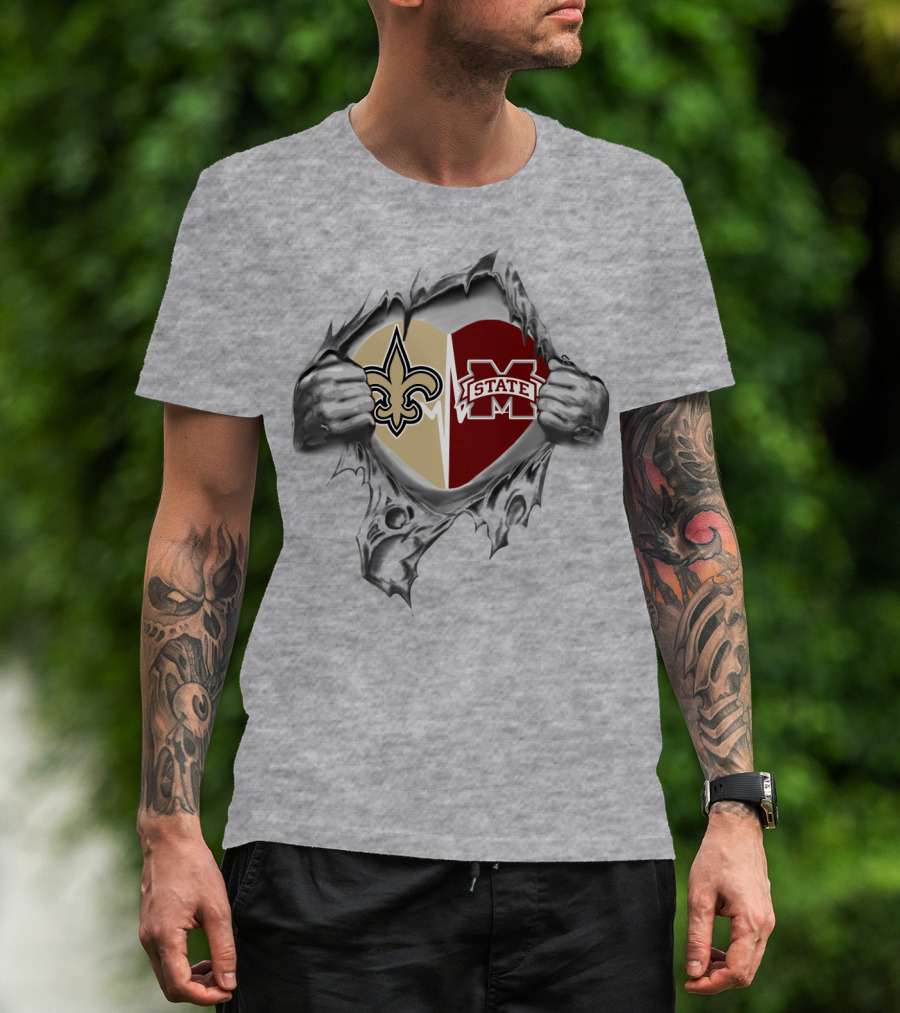 The New Orleans Saints Mississippi State Heart T-shirt is designed for everyday wear and a consistent fit. Fabric is pre-shrunk ring-spun cotton with durable stitching. See the size chart below for exact measurements.