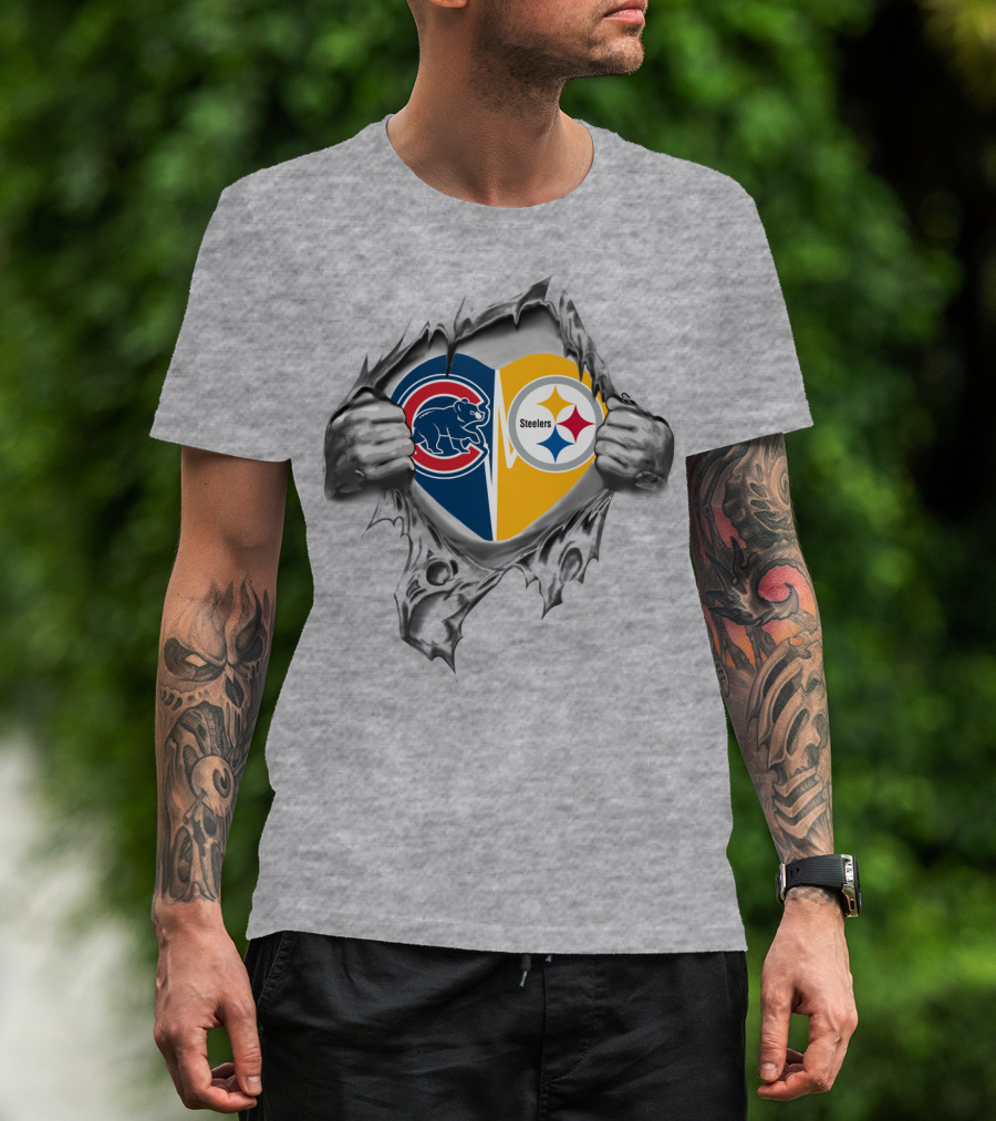 Cubs Steelers Heart Logo Ripped T-Shirt