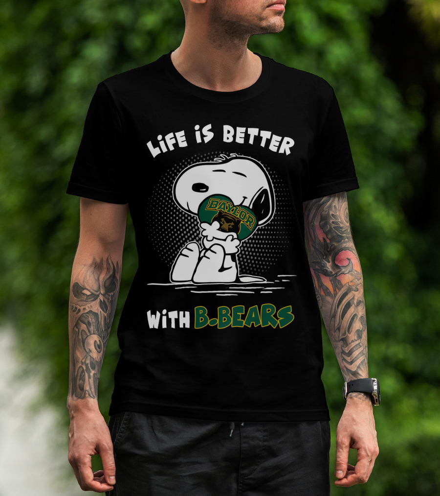 The Life Is Better With Baylor B. Bears T-shirt is designed for everyday wear and a consistent fit. Fabric is pre-shrunk ring-spun cotton with durable stitching. See the size chart below for exact measurements.