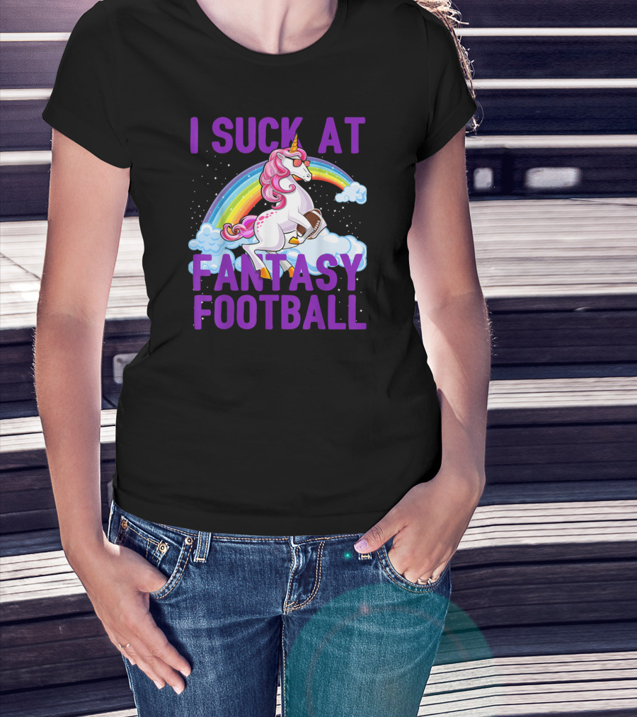 I Suck At Fantasy Football Unicorn Rainbow Clouds T-Shirt