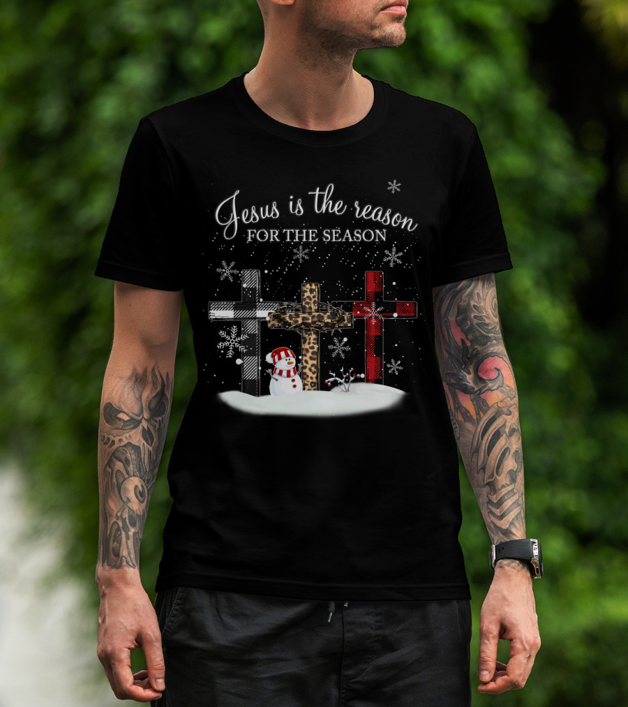 Jesus Is The Reason For The Season Snowman Crosses And Snowflakes T-Shirt