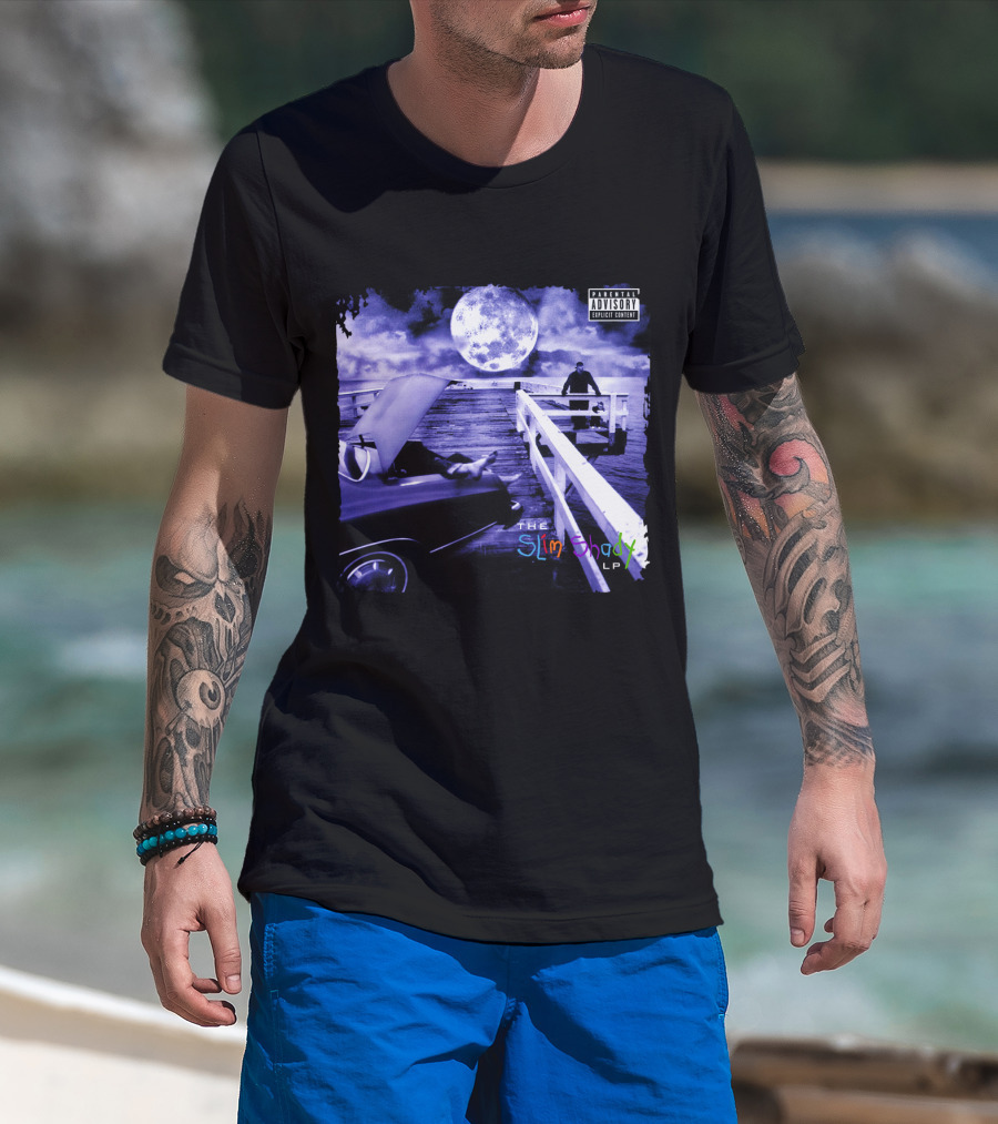 Eminem The Slim Shady LP Explicit Content Dark Purple Pier Moon T-Shirt