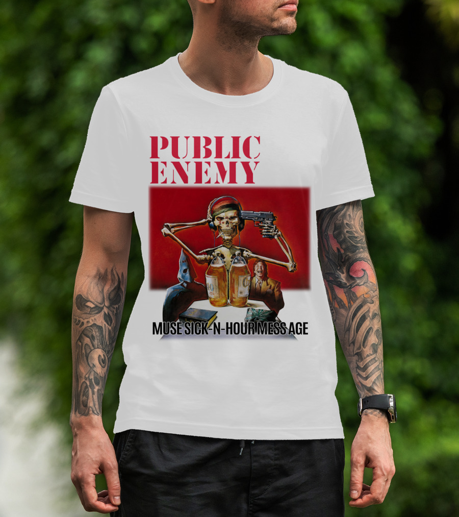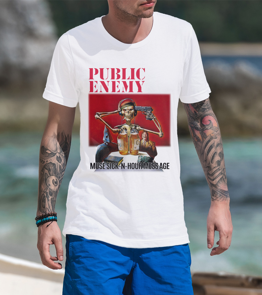 PUBLIC ENEMY Muse Sick N Hour Mess Age Skeleton Gun Bottles T-Shirt