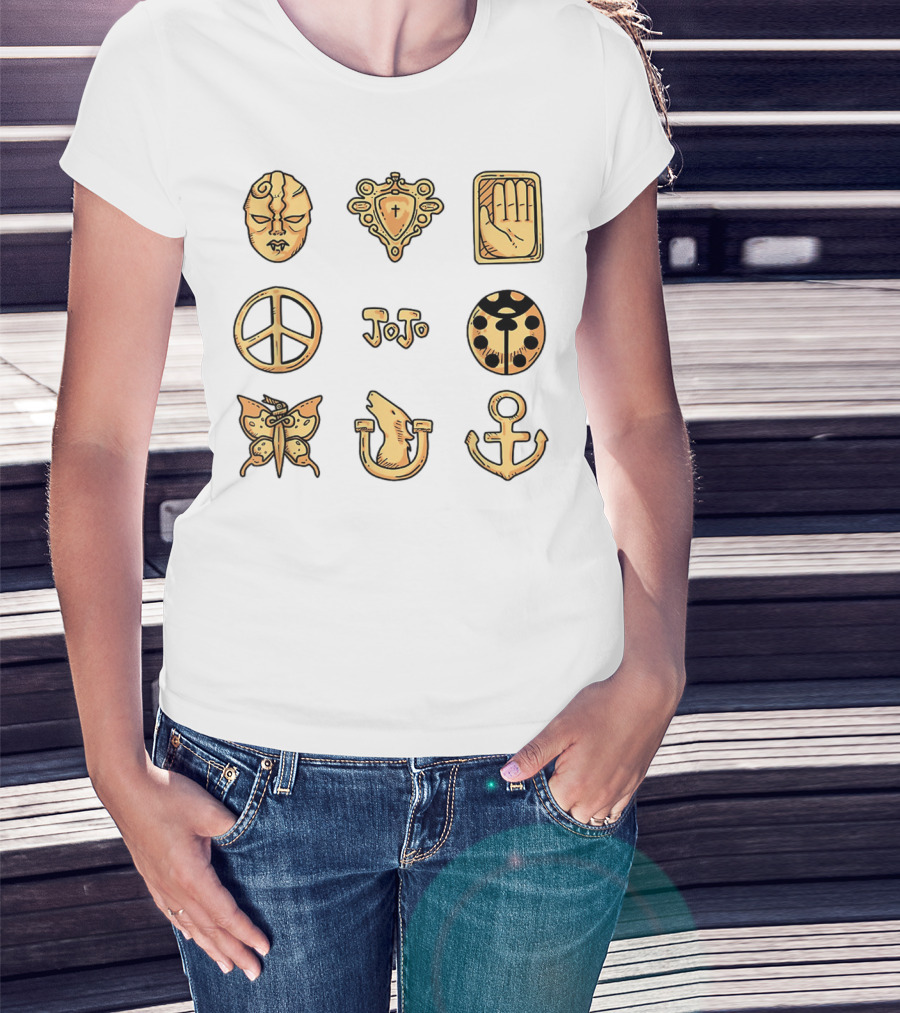 Jojos'ss Bizarres's Classics JoJo Mask Emblems Peace Hand Tarot Beetle Butterfly Anchor Symbols T-Shirt
