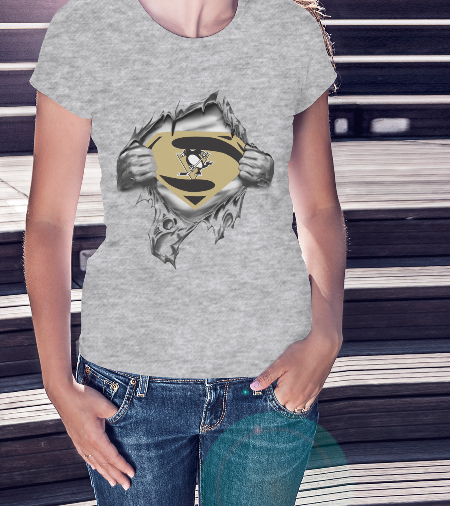 The Penguins Superman Logo Rip T-shirt is designed for everyday wear and a consistent fit. Fabric is pre-shrunk ring-spun cotton with durable stitching. See the size chart below for exact measurements.