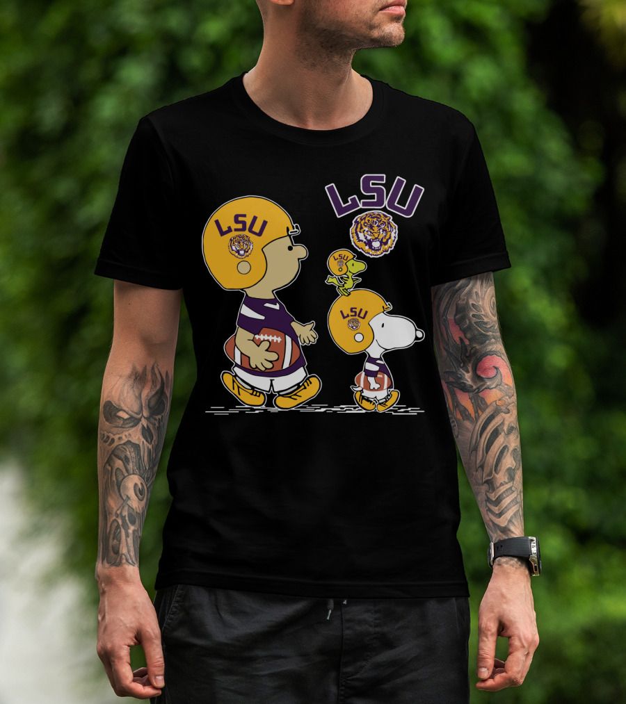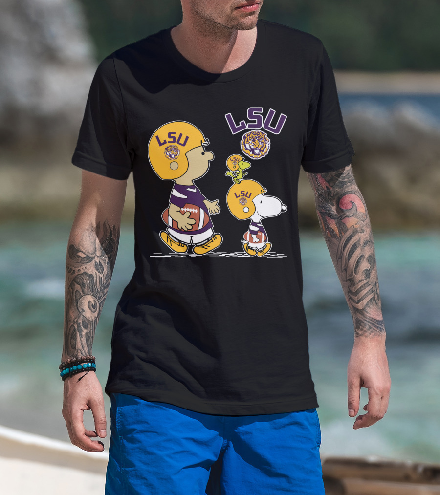 LSU Tigers Peanuts Characters Football Helmets T-Shirt