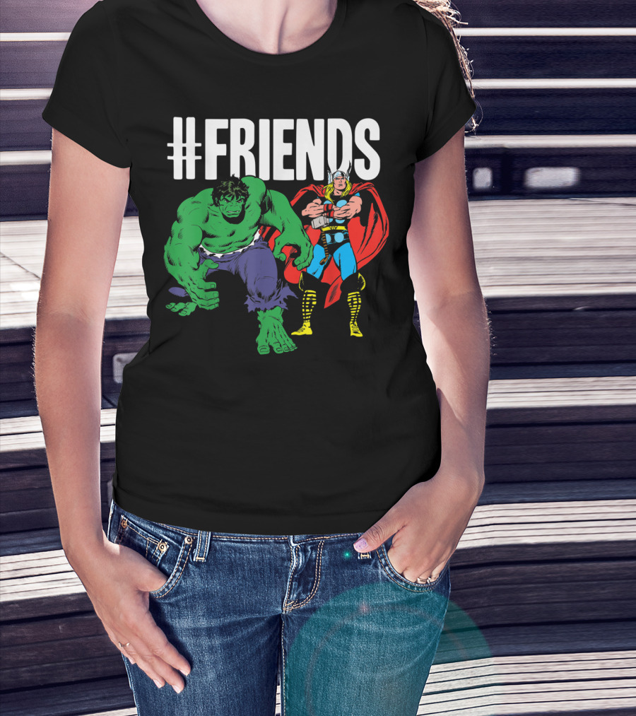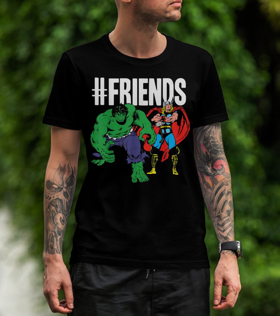 The Marvel Thor Hulk #Friends T-shirt is designed for everyday wear and a consistent fit. Fabric is pre-shrunk ring-spun cotton with durable stitching. See the size chart below for exact measurements.