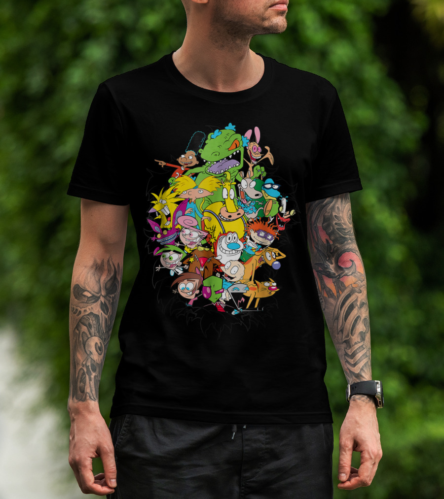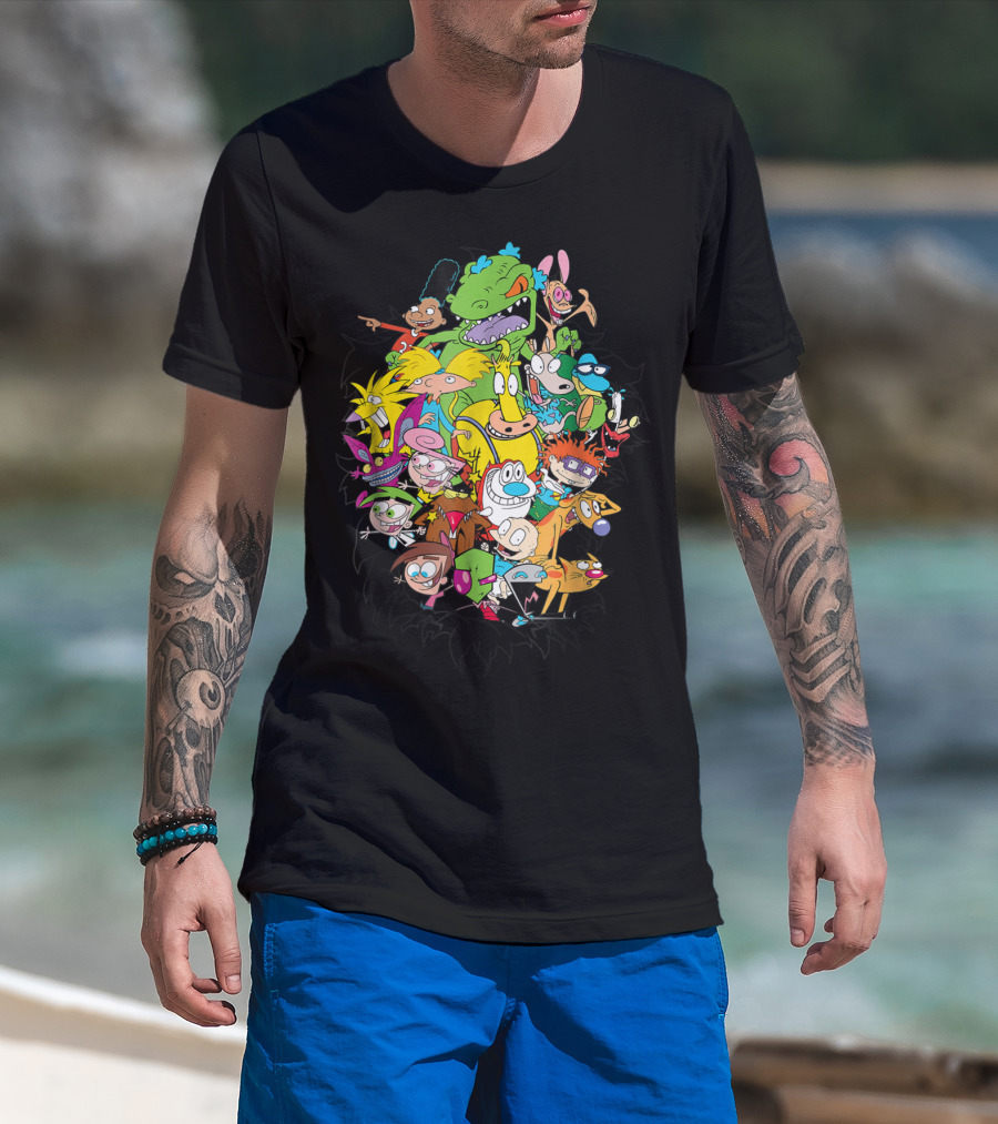 Nickelodeon Classic Characters Rugrats Hey Arnold Rocko's Modern Life Ren And Stimpy CatDog Fairly OddParents All Real Monsters Explosion T-Shirt