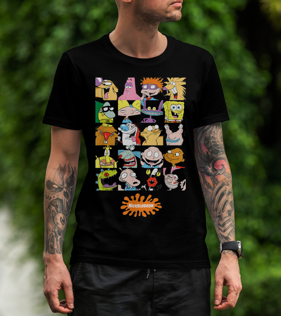 The Nickelodeon Classic 90s Characters Featuring Rugrats Hey Arnold Spongebob Rocket Power and More T-shirt is designed for everyday wear and a consistent fit. Fabric is pre-shrunk ring-spun cotton with durable stitching. See the size chart below for exact measurements.