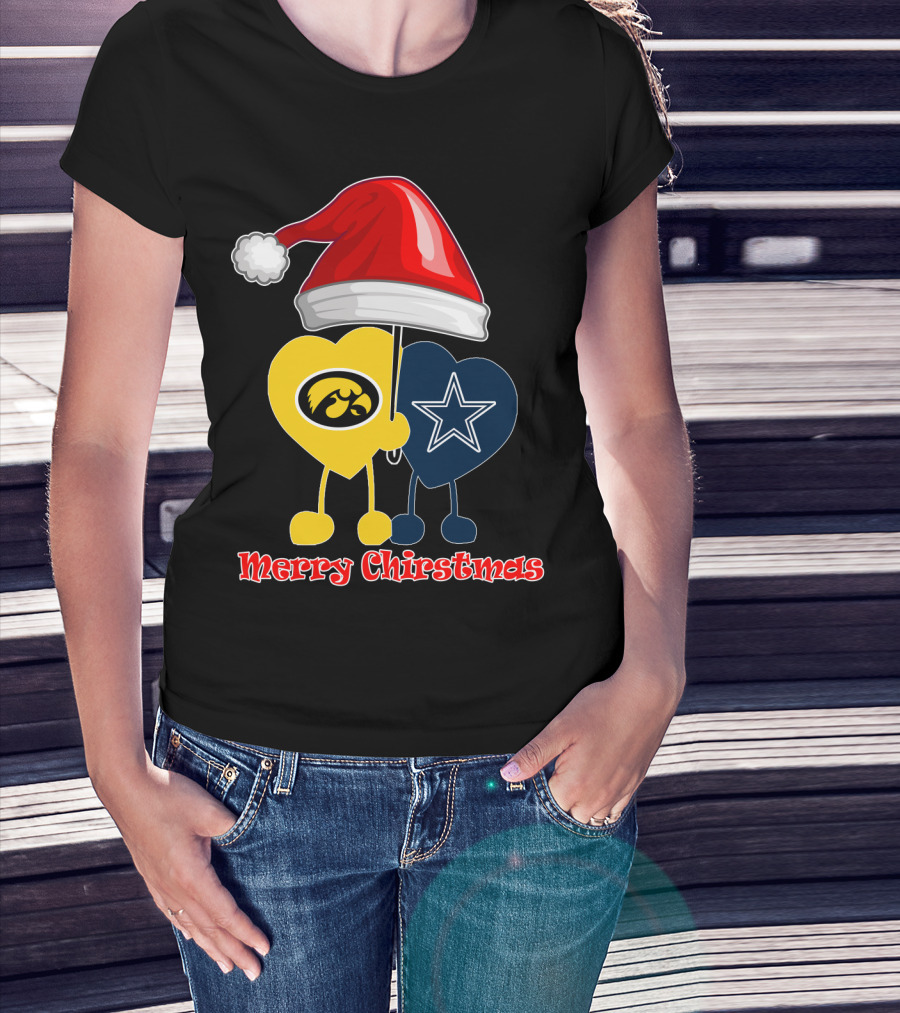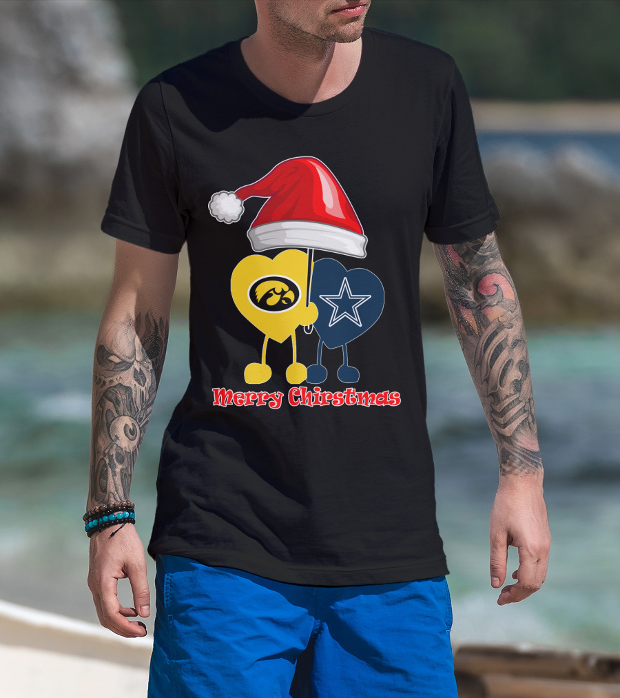 Merry Christmas Iowa Hawkeyes Dallas Cowboys Santa Hat T-Shirt