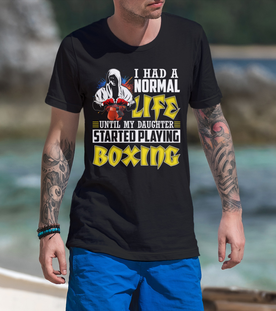 I Had A Normal Life Until My Daughter Started Playing Boxing Hooded Boxer With Red Gloves T-Shirt