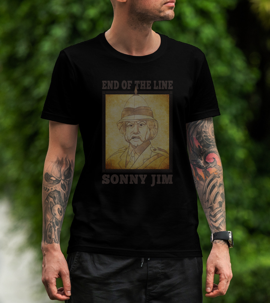 The End of the Line Sonny Jim Jumanji Van Pelt T-shirt is designed for everyday wear and a consistent fit. Fabric is pre-shrunk ring-spun cotton with durable stitching. See the size chart below for exact measurements.