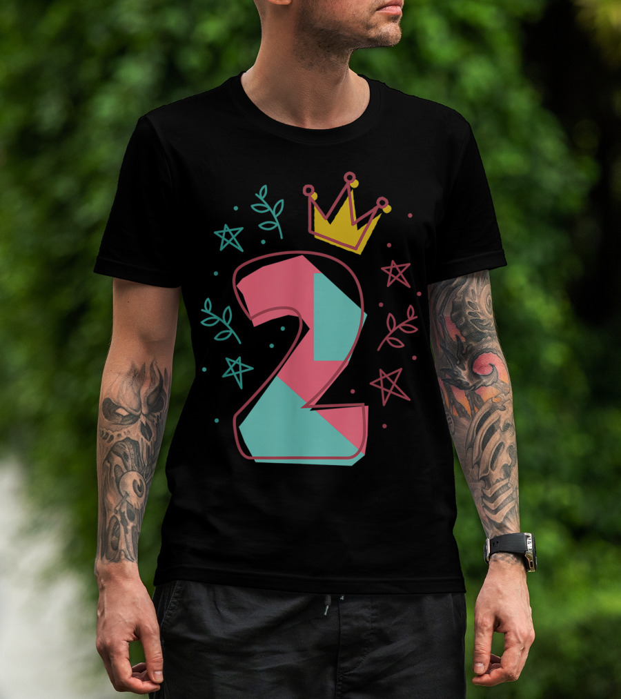 2Nd Birthday Crown Stars Leaves T-Shirt