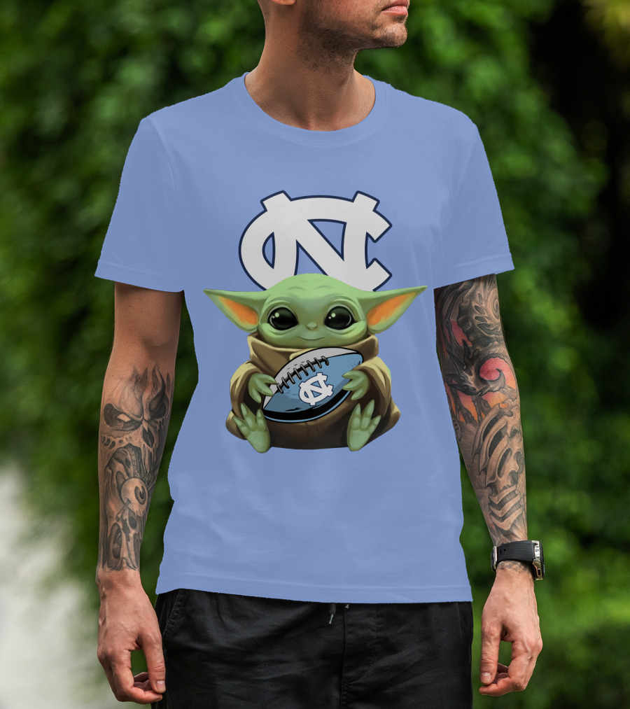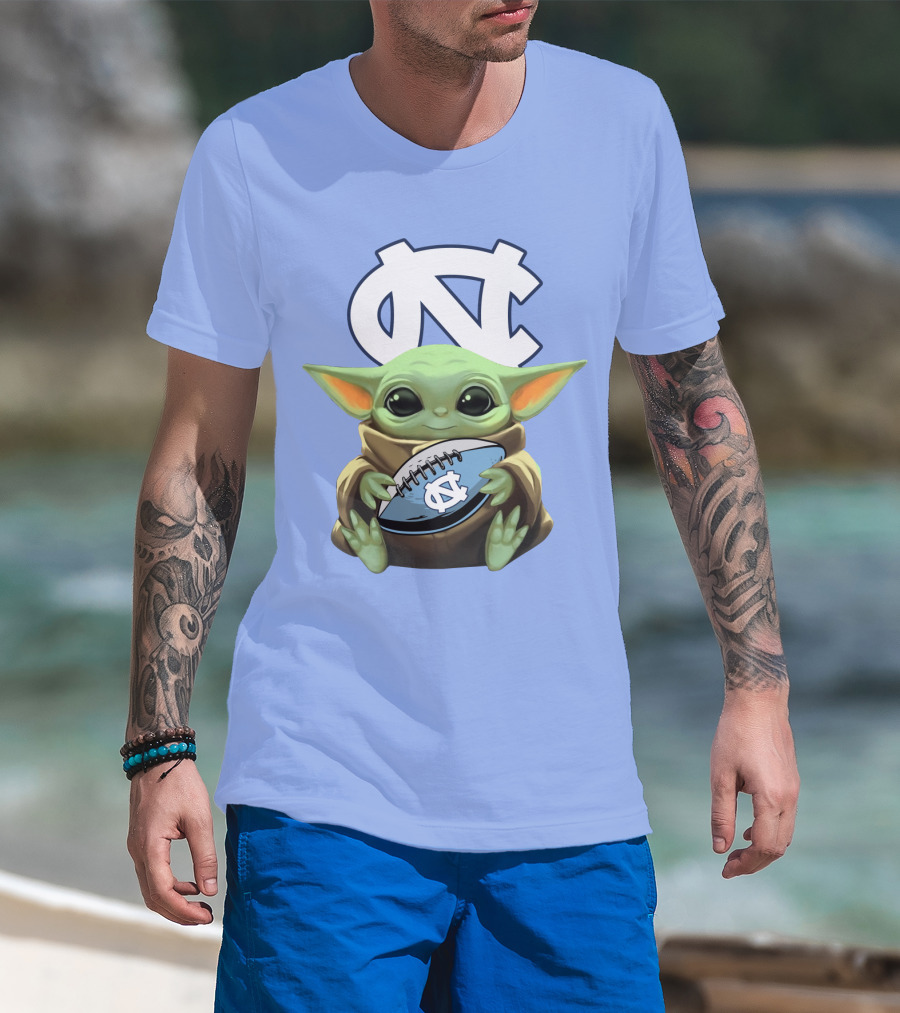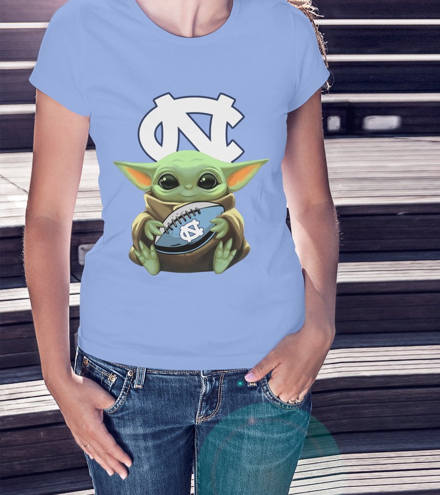Baby Yoda UNC Tar Heels Football T-Shirt