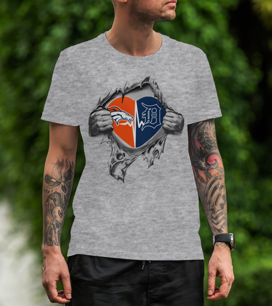 Broncos Tigers Heart Emblem With Hands Ripping Open T-Shirt