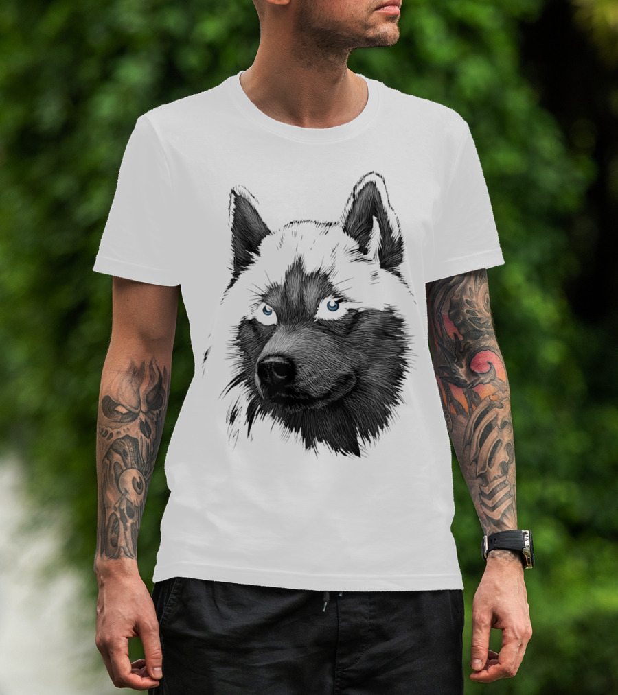 The Classic Blue-Eyed Siberian Husky Lover T-shirt is designed for everyday wear and a consistent fit. Fabric is pre-shrunk ring-spun cotton with durable stitching. See the size chart below for exact measurements.