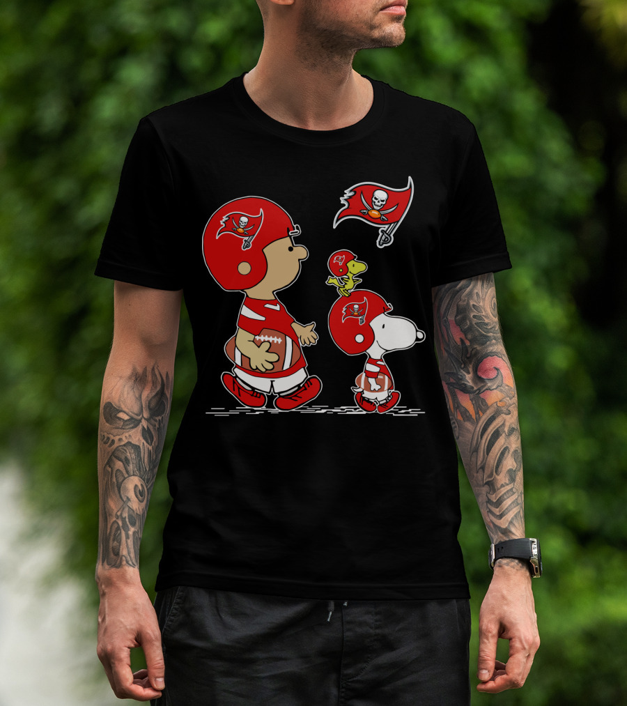 Buccaneers Snoopy Football Team Peanuts Characters Wearing Helmets And Flag T-Shirt