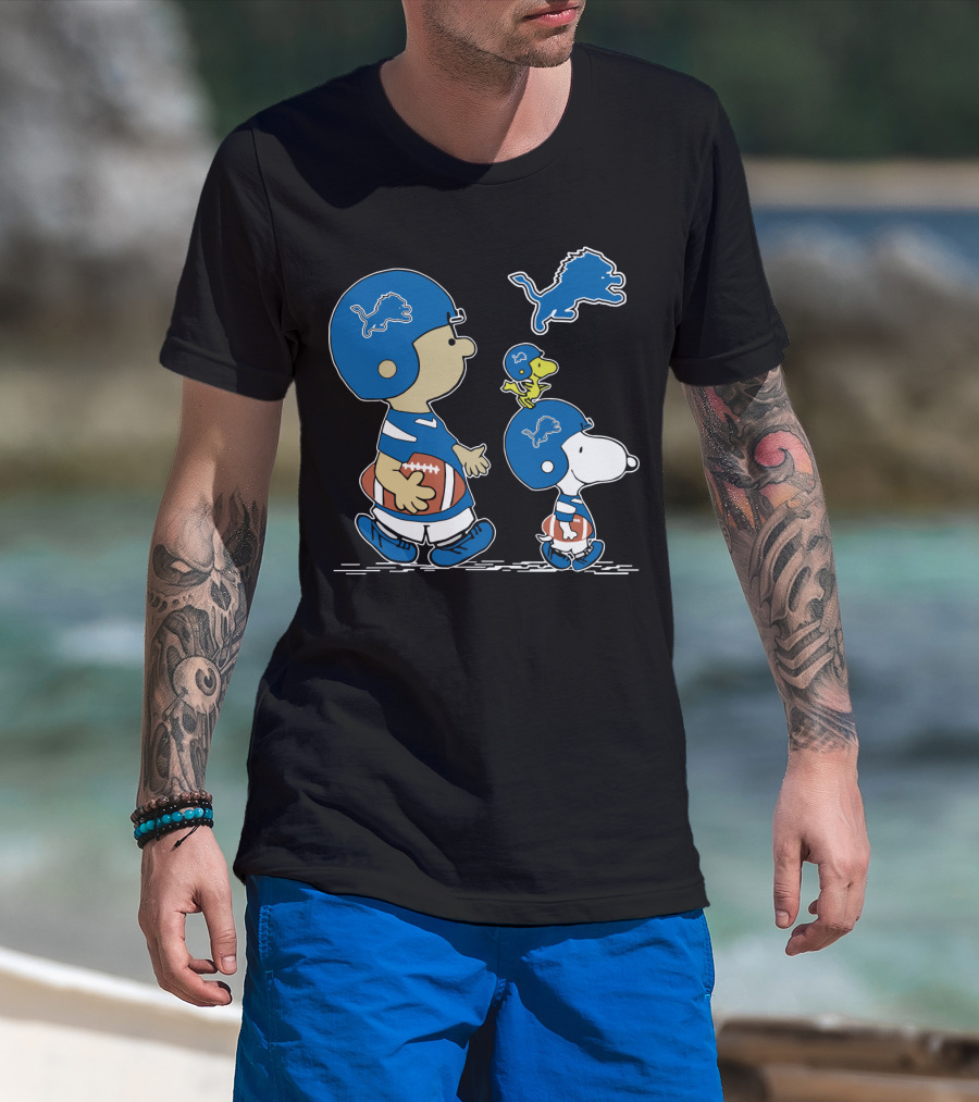 Peanuts Snoopy Woodstock Detroit Lions Football T-Shirt