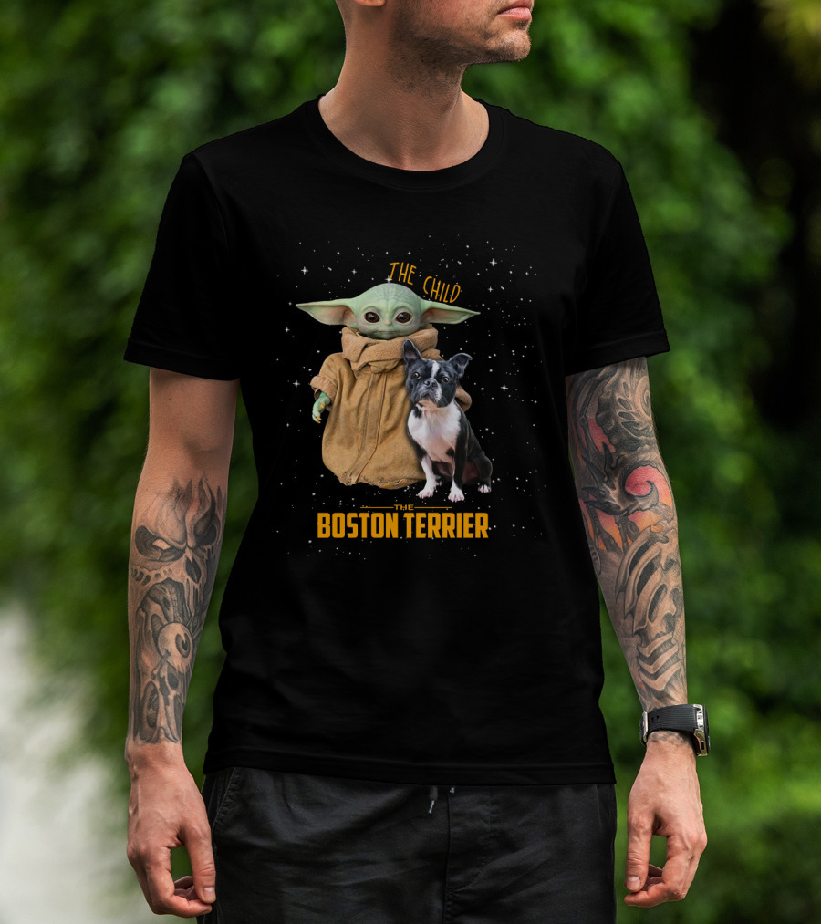 The Child Baby Yoda And Boston Terrier Duo In Space T-Shirt