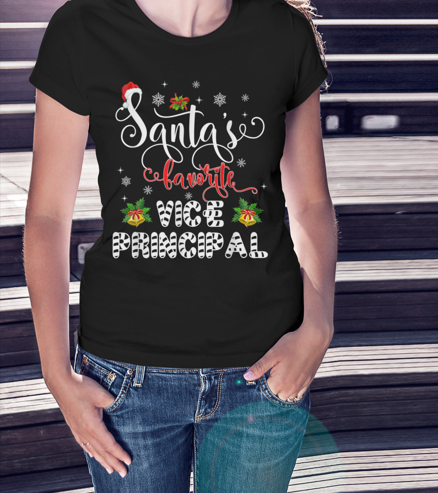 Santa's Favorite Vice Principal Christmas Holiday Snowflakes And Bells T-Shirt