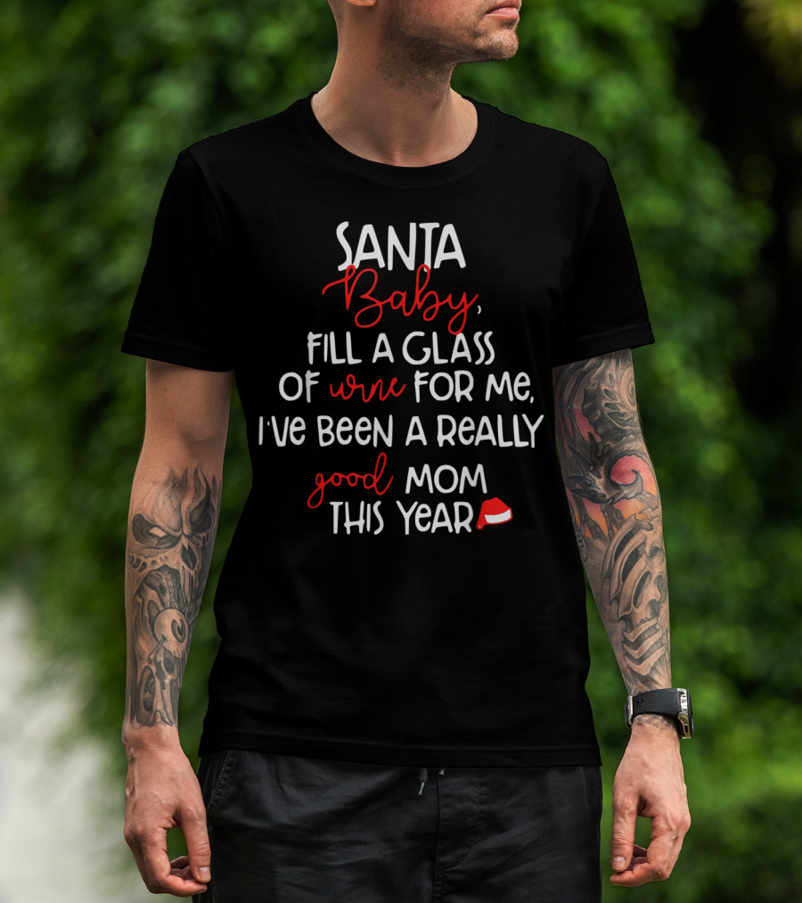 Santa Baby Fill A Glass Of Wine For Me I've Been A Really Good Mom This Year T-Shirt