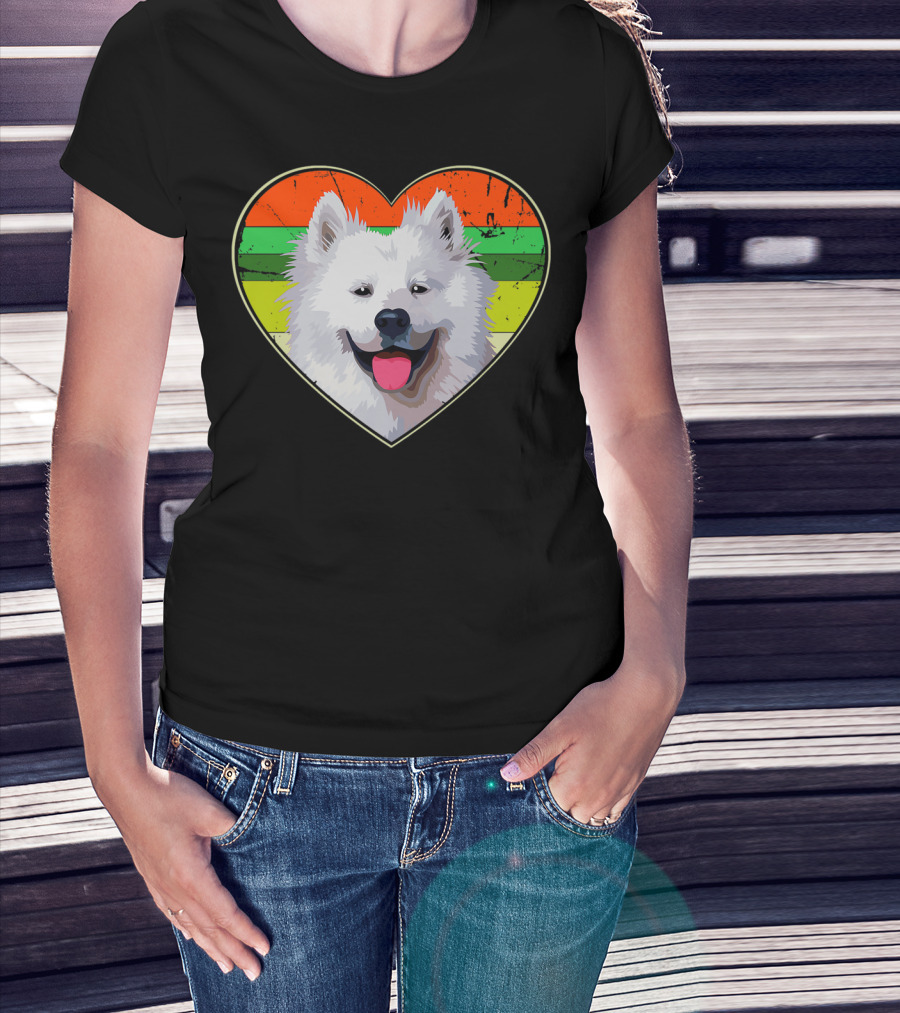 Heart American Eskimo Dog Rainbow Stripes T-Shirt