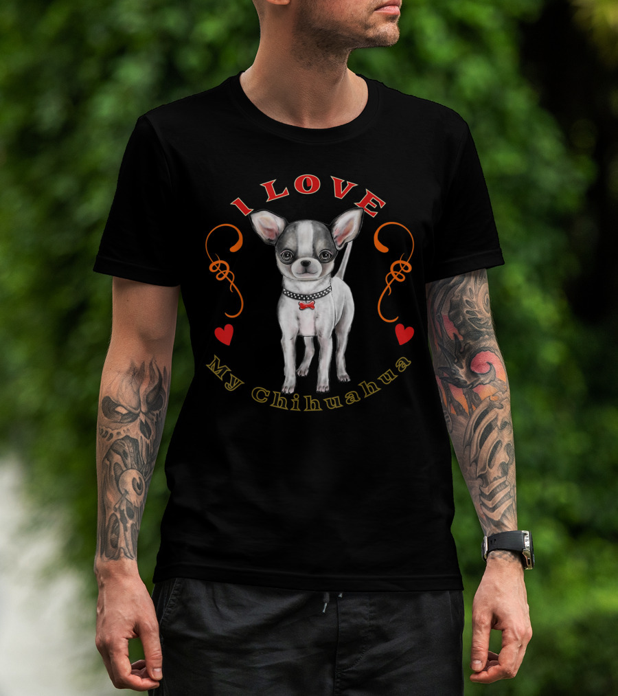 The I Love My Chihuahua T-shirt is designed for everyday wear and a consistent fit. Fabric is pre-shrunk ring-spun cotton with durable stitching. See the size chart below for exact measurements.