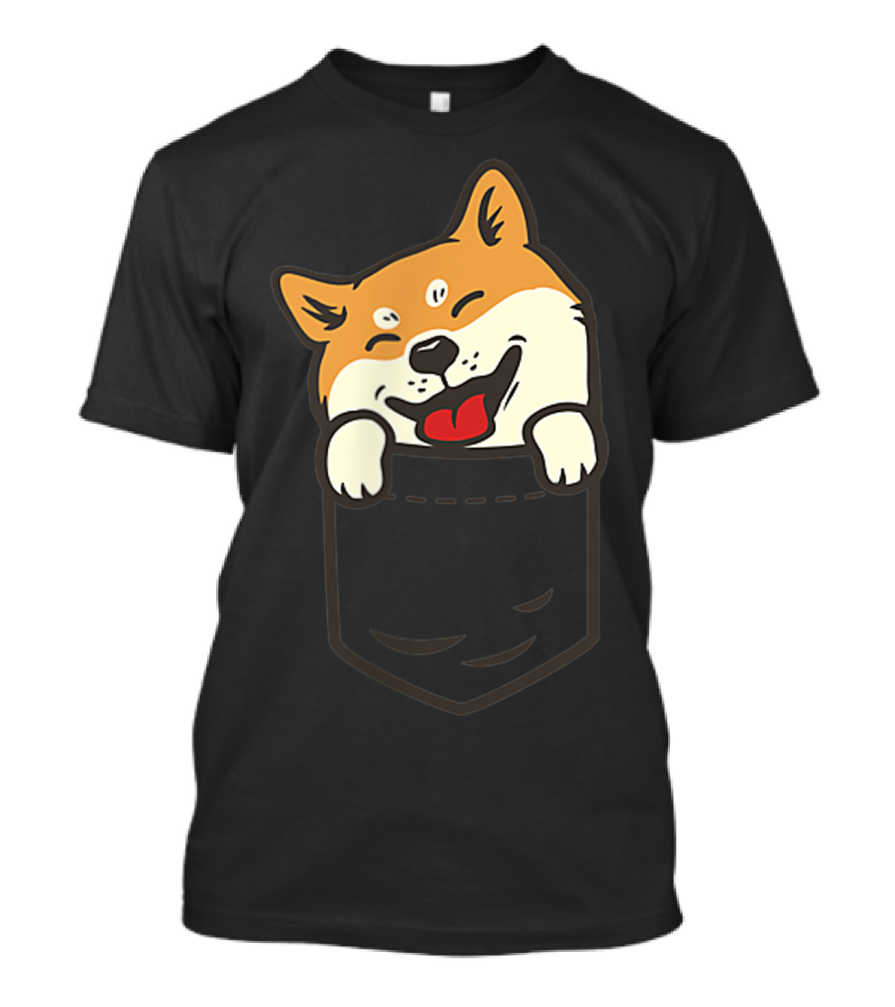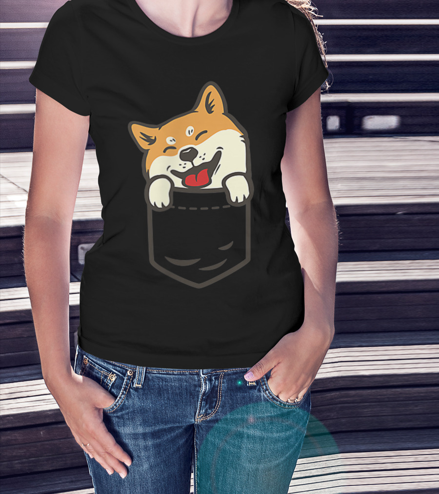 Cute Shiba Inu Akita Dog Face In Pocket T-Shirt