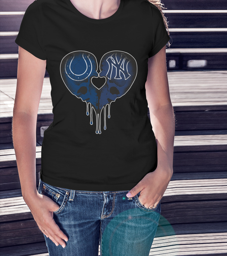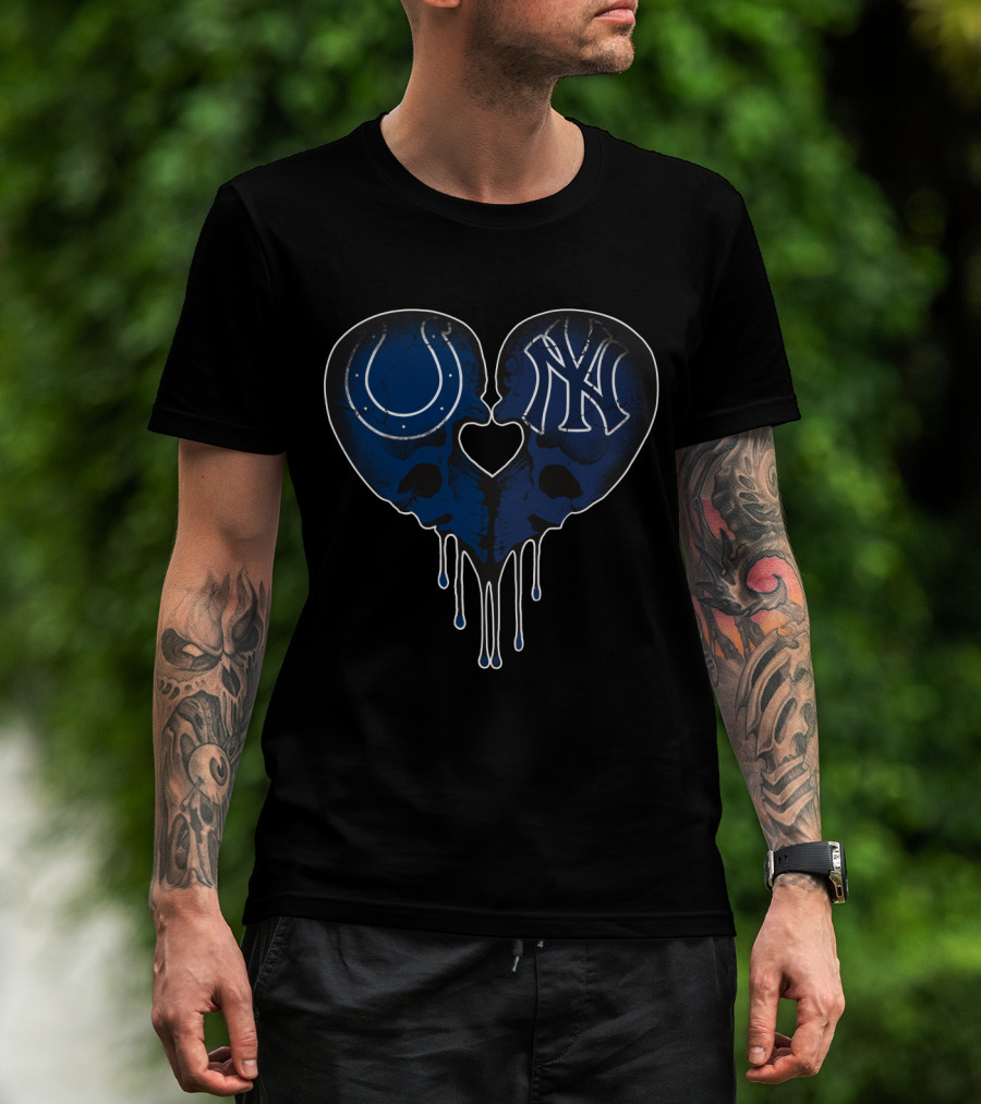 The Colts Yankees Skull Heart Fusion T-shirt is designed for everyday wear and a consistent fit. Fabric is pre-shrunk ring-spun cotton with durable stitching. See the size chart below for exact measurements.