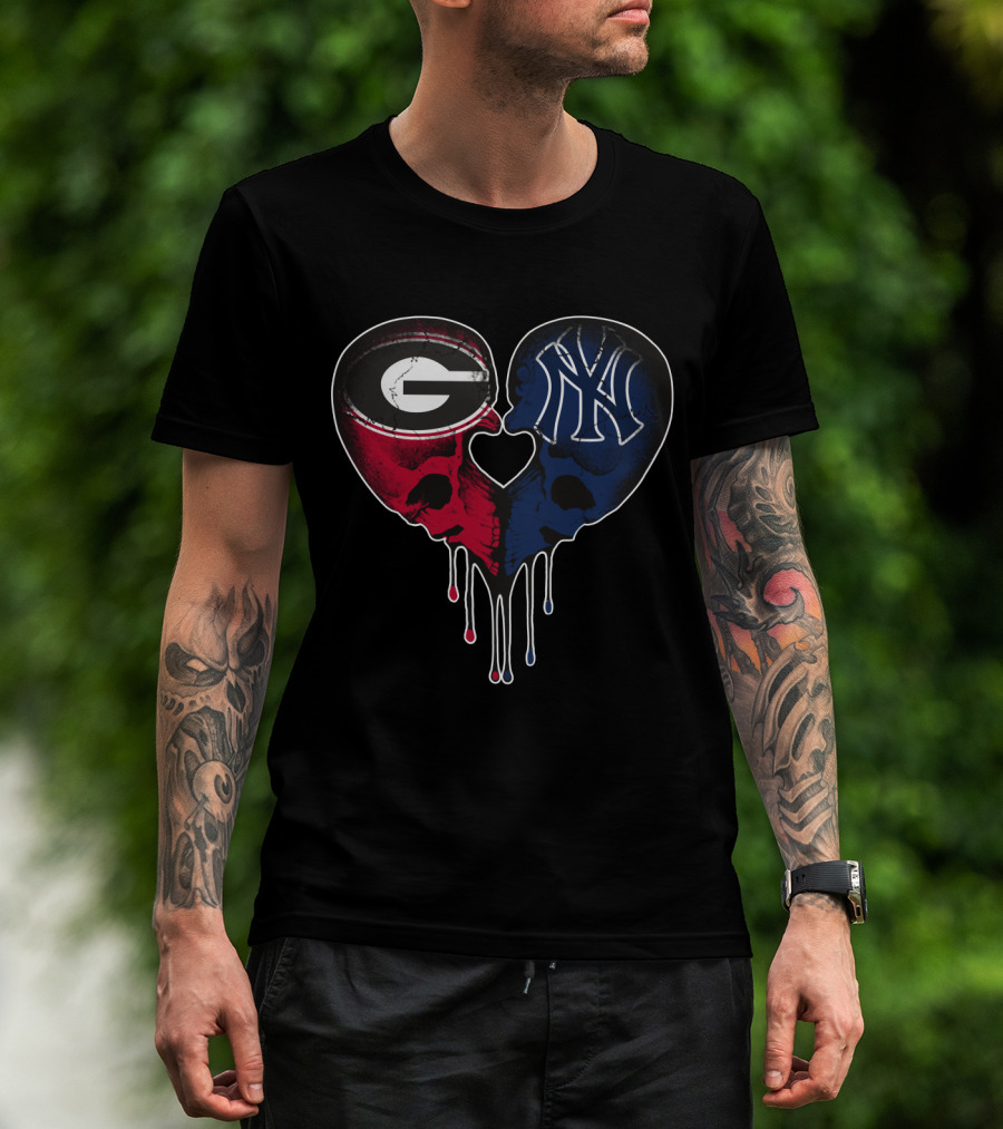 Georgia Bulldogs Yankees Dripping Skull Heart T-Shirt