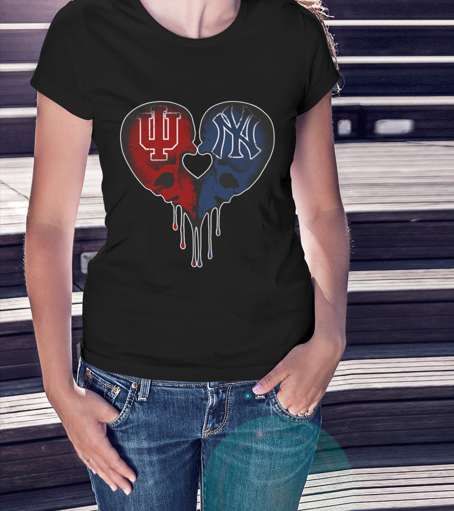 Yankees Hoosiers Skull Heart Dripping Love T-Shirt