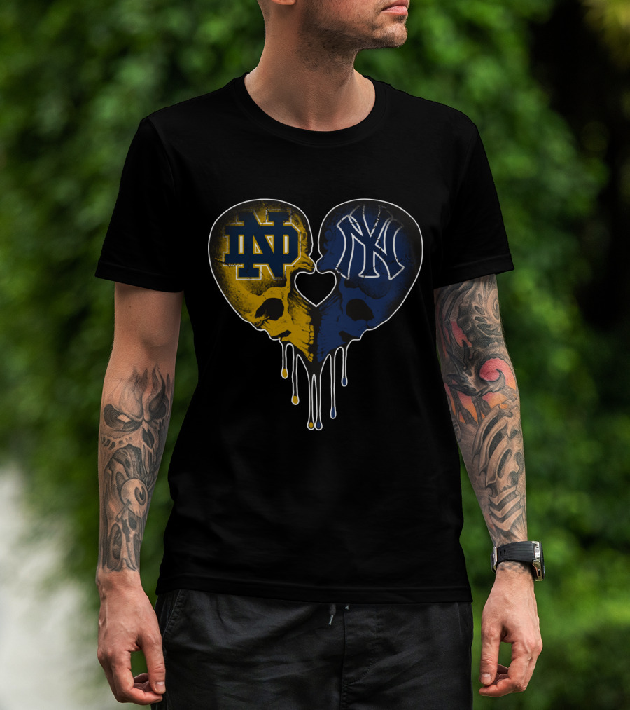 Notre Dame Yankees Dripping Skull Heart Love T-Shirt