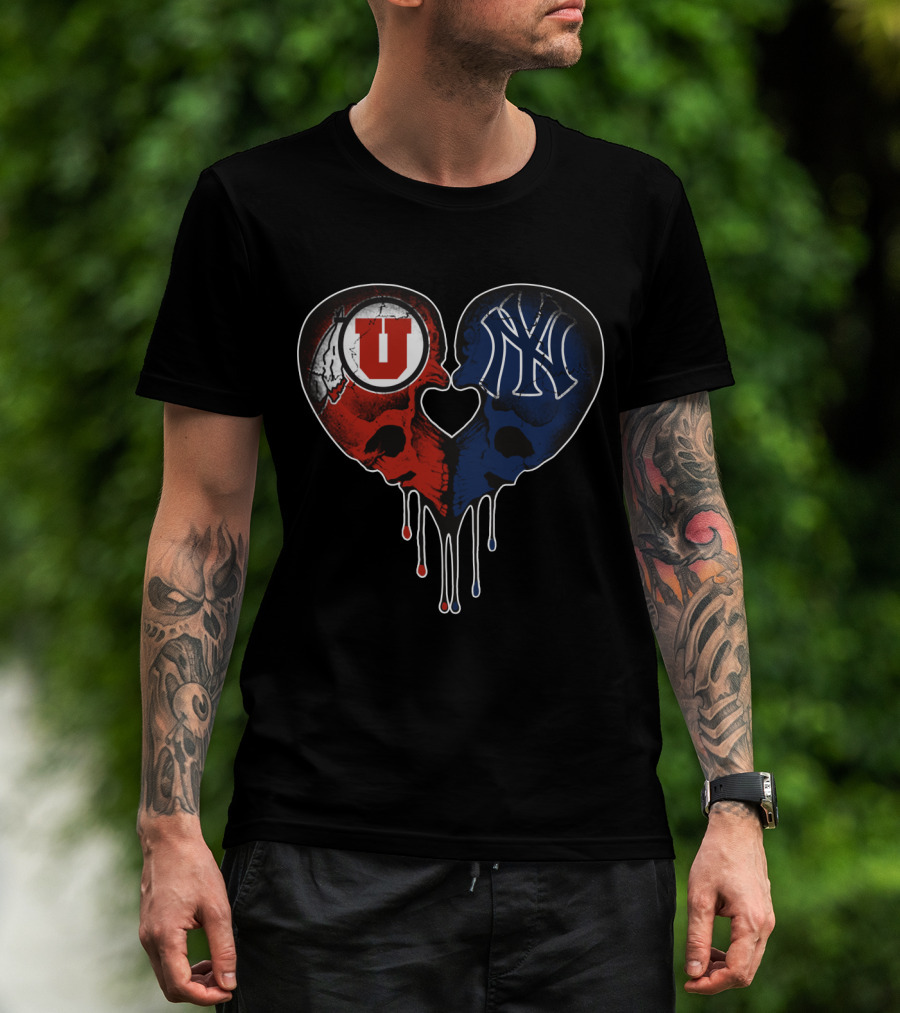 Utah Utes New York Yankees Skull Heart Love T-Shirt