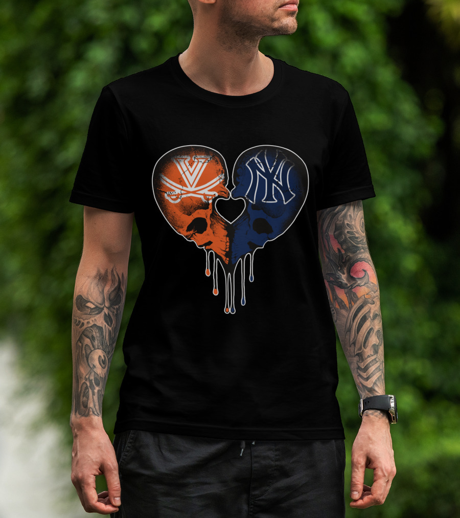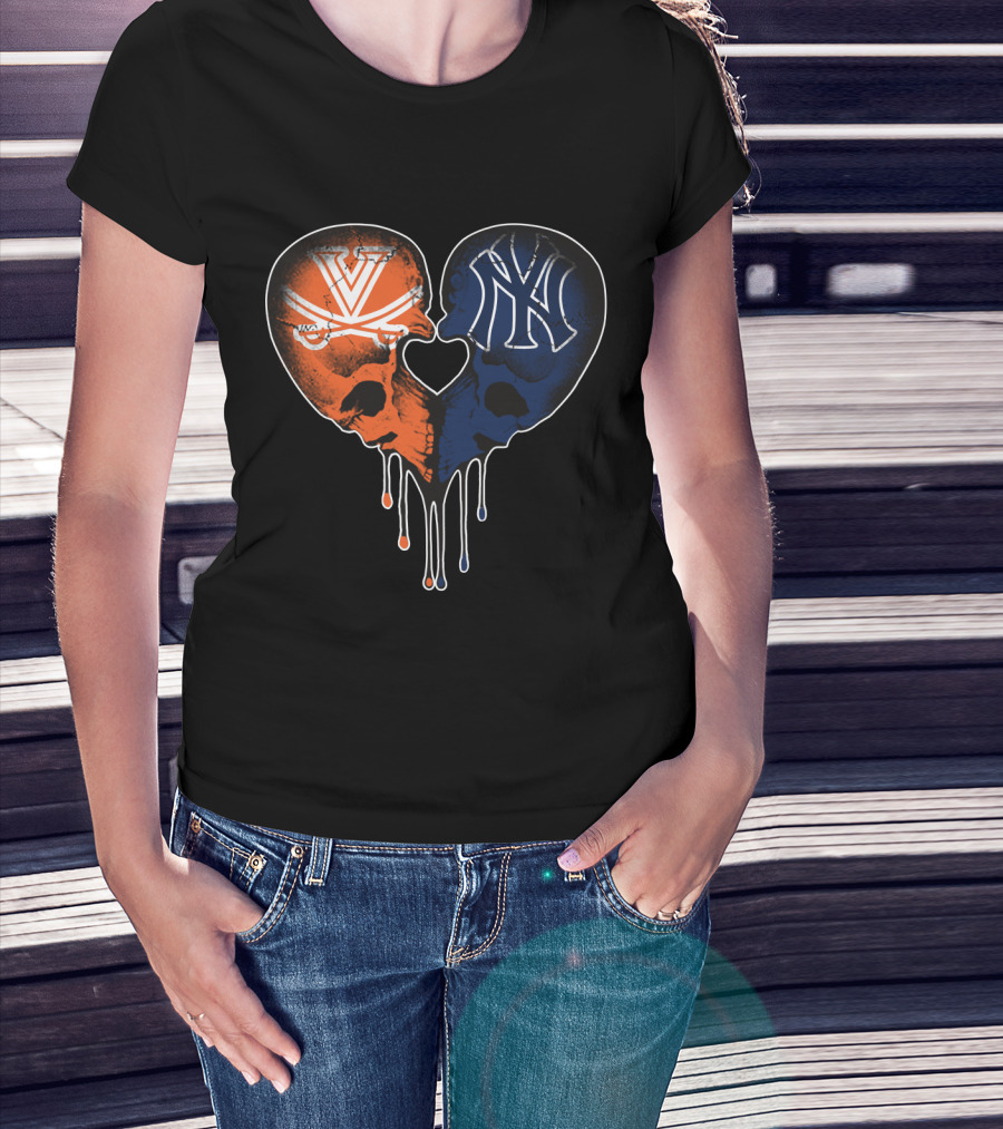 Yankees Cavaliers Skull Heart Fusion T-Shirt