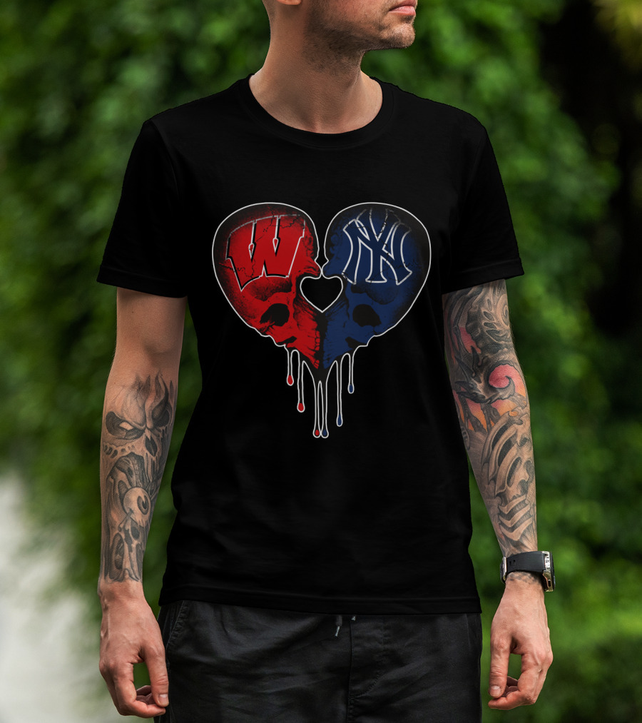 Yankees Wisconsin Badgers Heart Skull Love T-Shirt