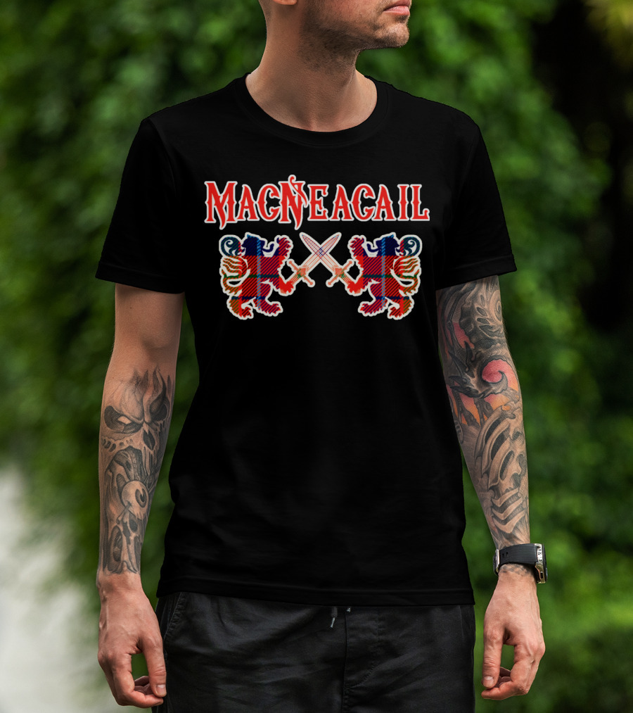 Macneacail Scottish Clan Lion Tartan Crest With Swords T-Shirt