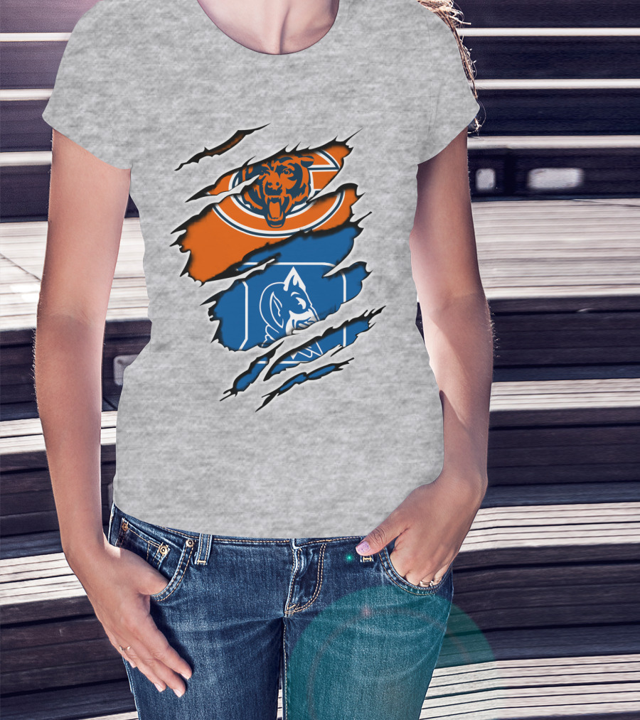 The Chicago Bears Duke Blue Devils T-shirt is designed for everyday wear and a consistent fit. Fabric is pre-shrunk ring-spun cotton with durable stitching. See the size chart below for exact measurements.