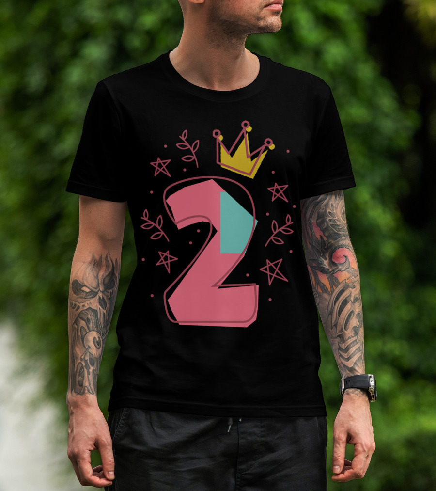 Princess Two Years Old 2nd Birthday Crown Stars T-Shirt
