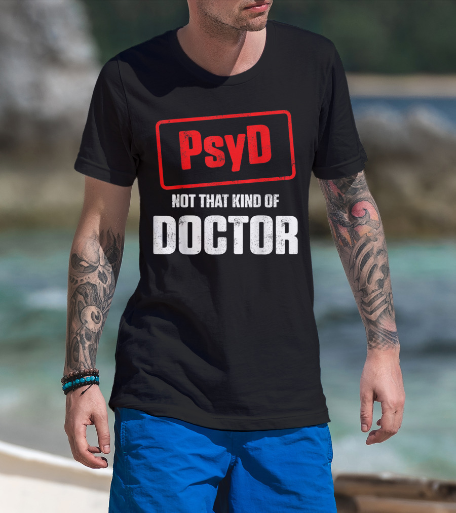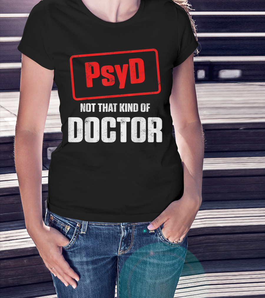 The Psyd Not That Kind of Doctor T-shirt is designed for everyday wear and a consistent fit. Fabric is pre-shrunk ring-spun cotton with durable stitching. See the size chart below for exact measurements.