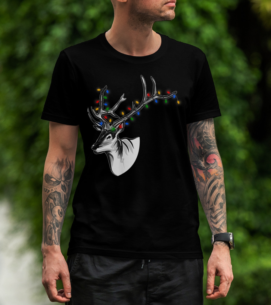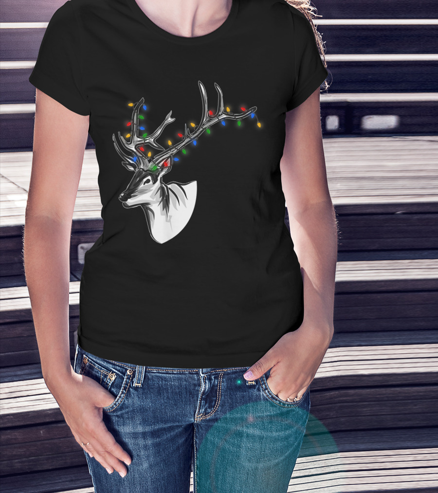 Reindeer With Colorful Christmas Lights On Antlers Funny Animal T-Shirt