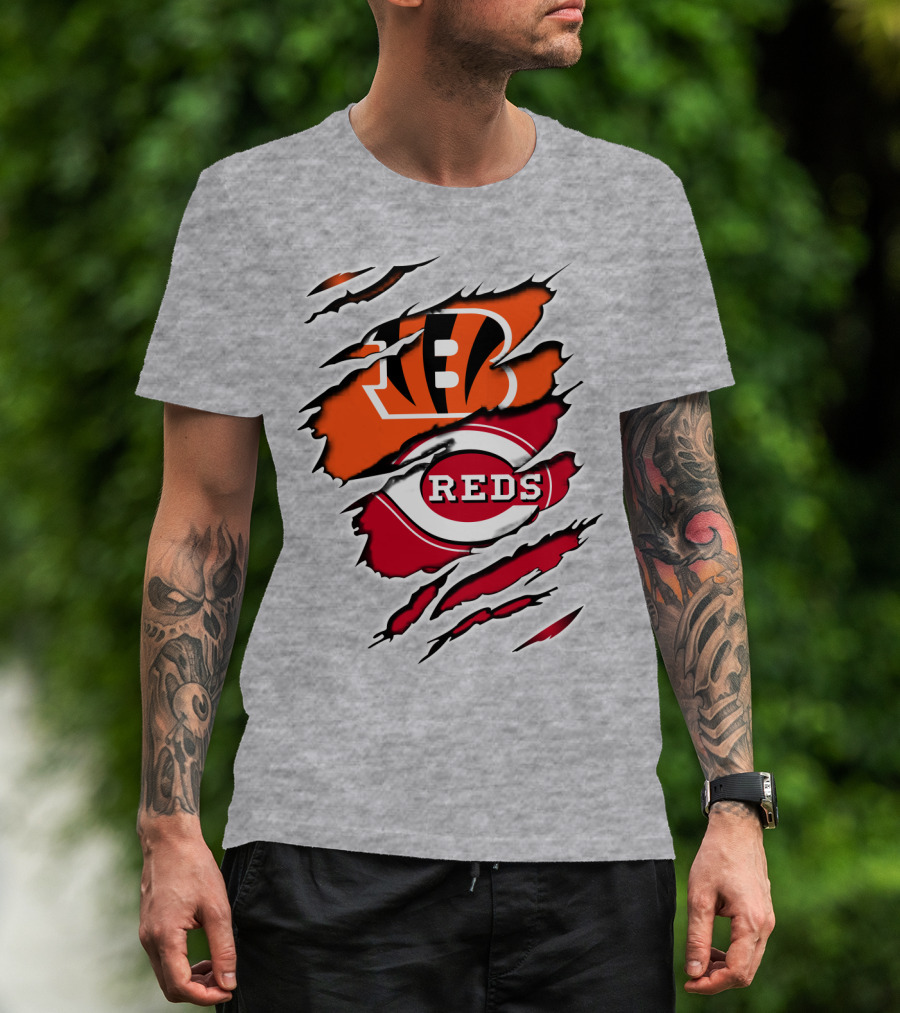 Bengals Reds NFL MLB Cincinnati Fan Ripped T-Shirt