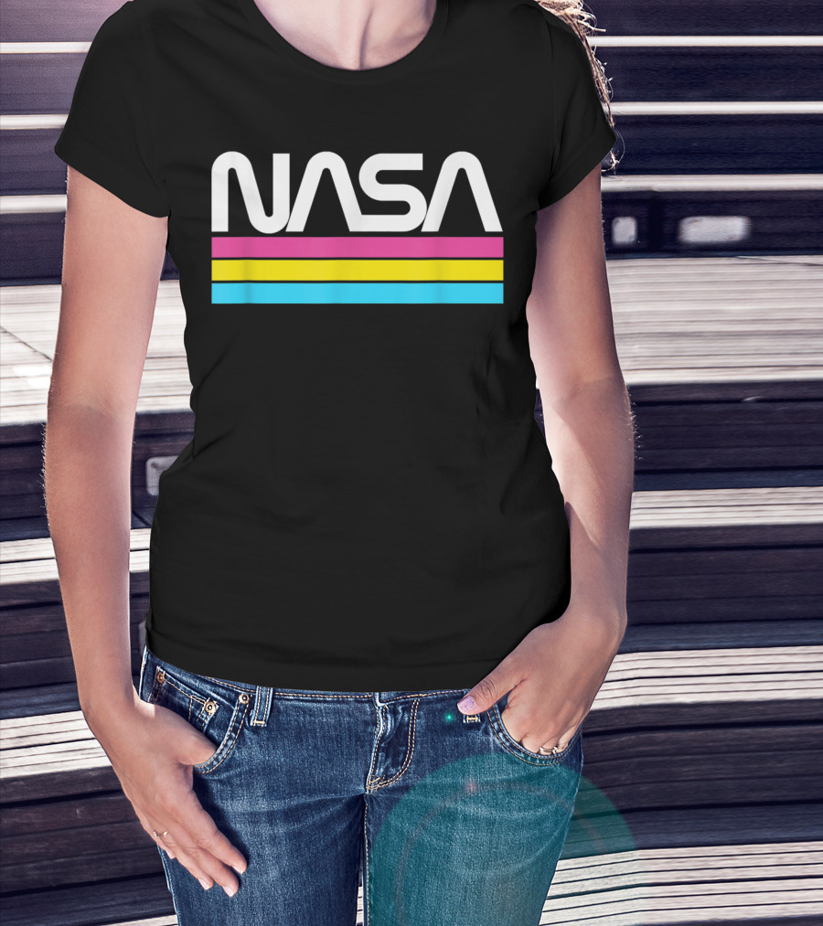 NASA Retro Style Worm Logo With Pink Yellow Blue Stripes T-Shirt