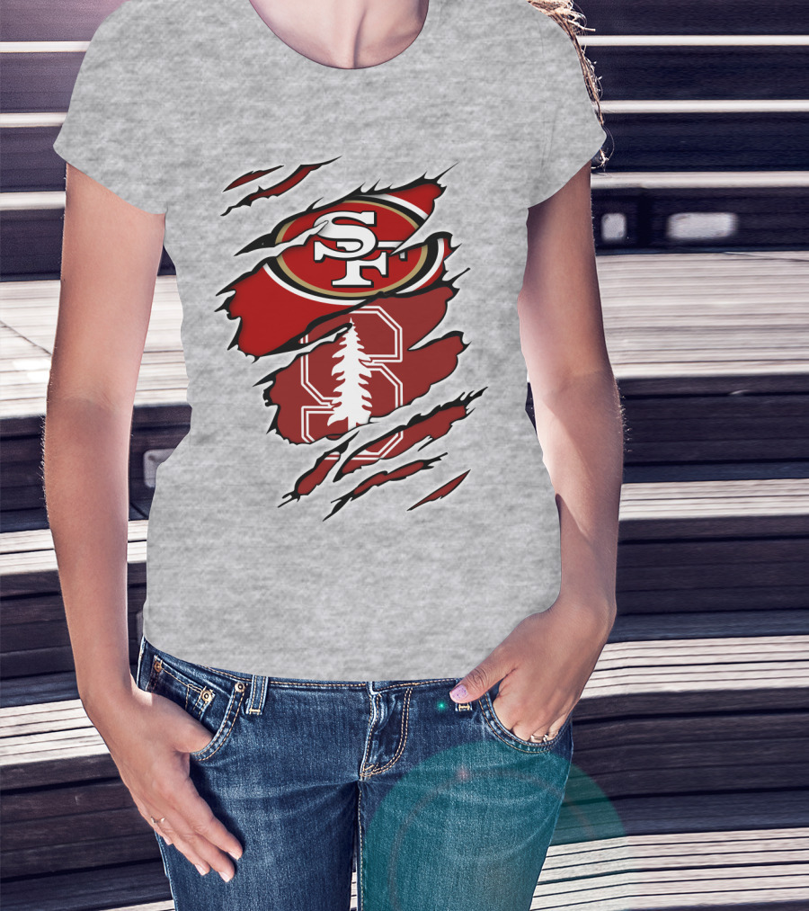 SF 49ers Stanford Cardinal Tree Logo Football T-Shirt