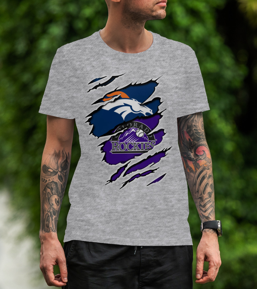 Broncos Rockies Colorado Sports Fan Ripped T-Shirt