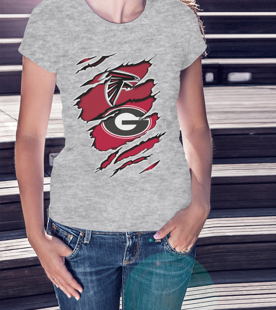 Atlanta Falcons Georgia Bulldogs Logos Ripped T-Shirt