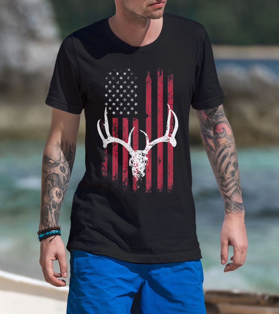 Vintage Deer USA Flag Animals Lover Antlers Rustic Patriotic T-Shirt