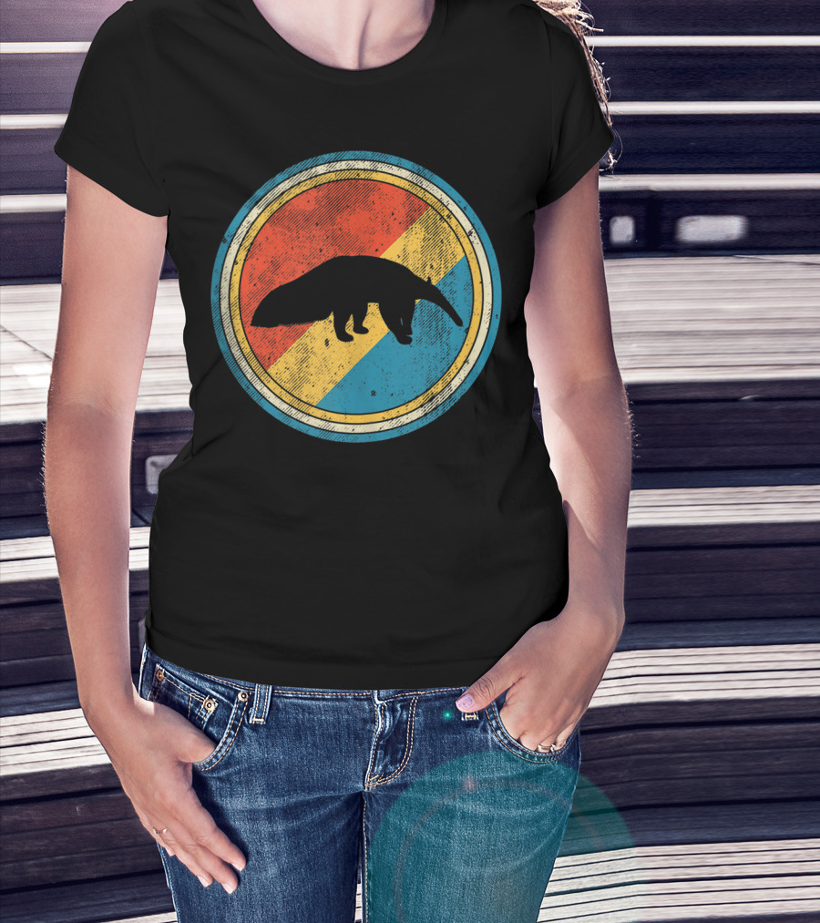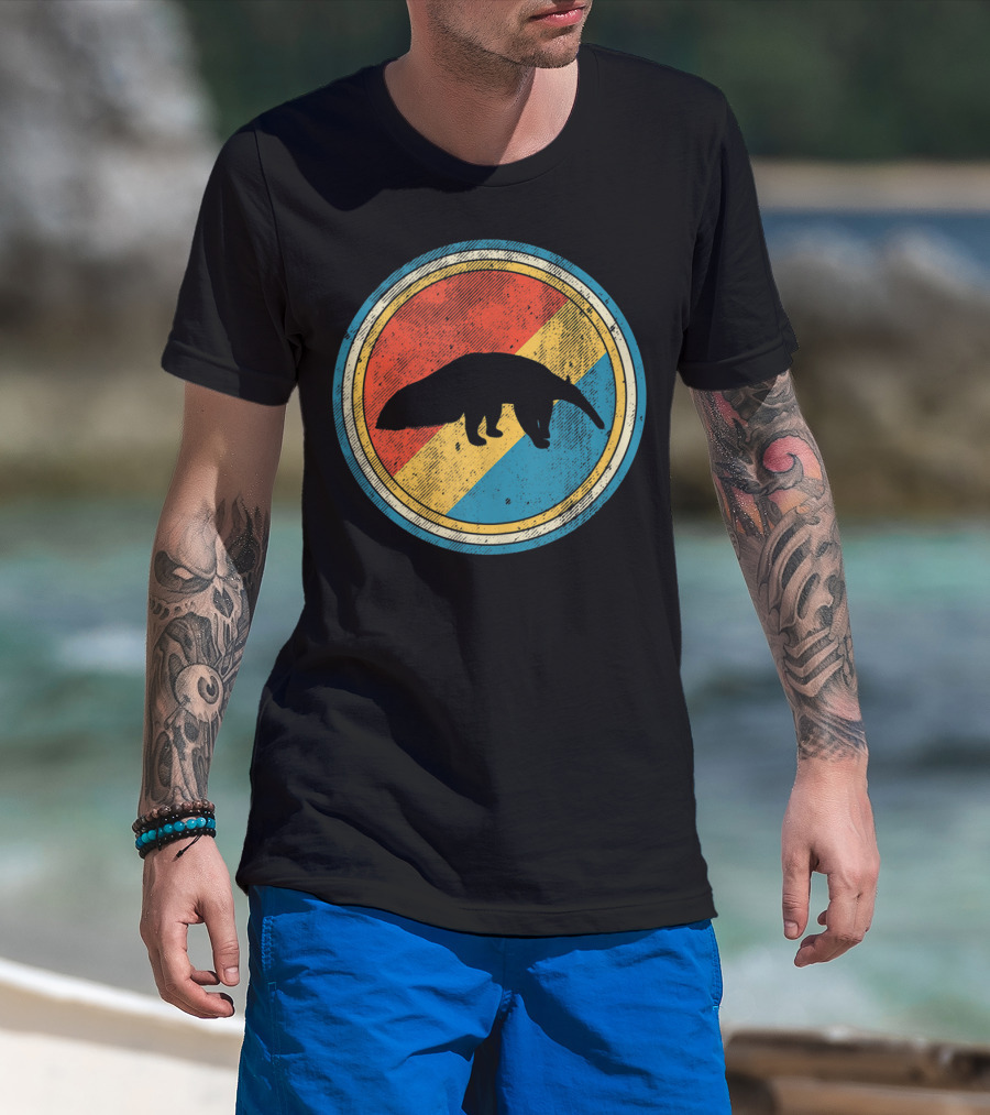 Vintage Retro Circle Giant Anteater Silhouette On Colorful Background T-Shirt